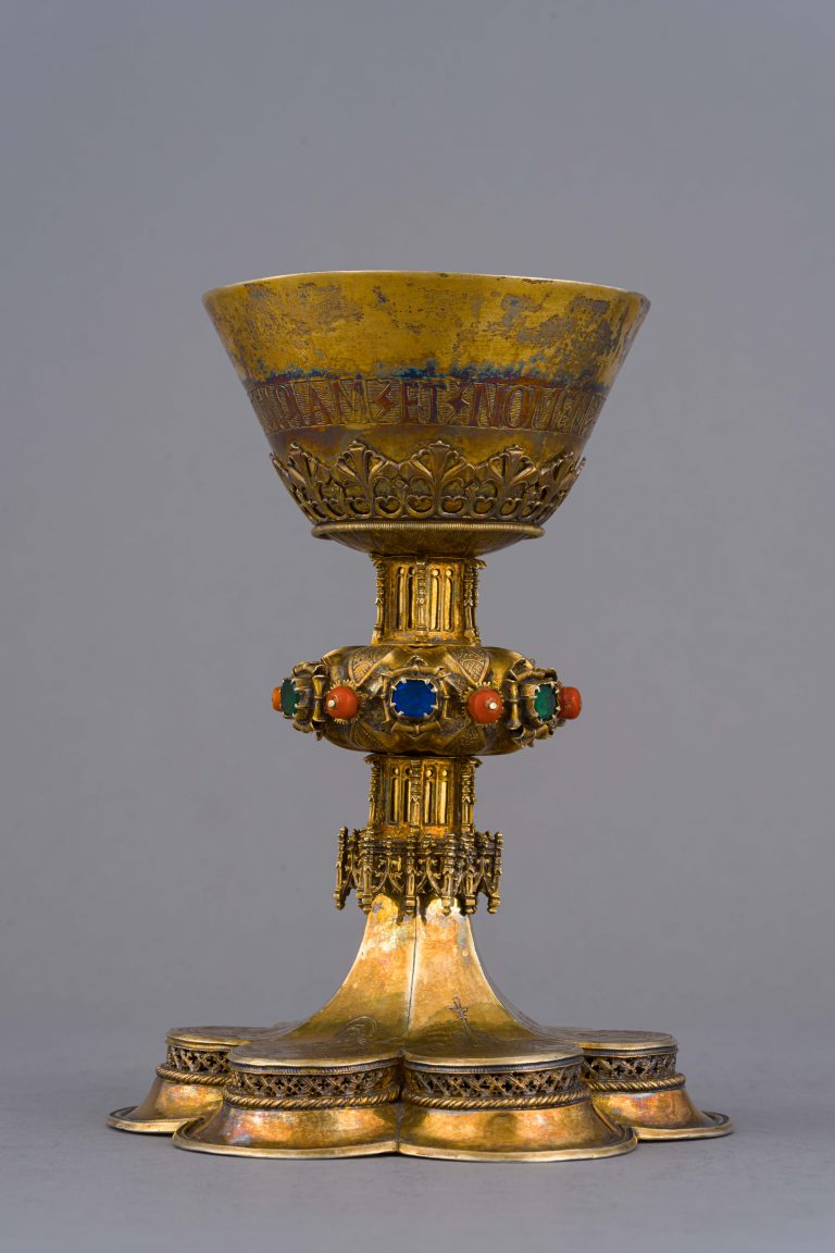 Kielich mszalny. Późnogotycki, srebro złocone odlewane i repusowane. Kamienie oraz korale zdobiące nodus są dodatkiem późniejszym. Na stopie postacie świętych: św. Barbary, św. Anny Samotrzeć , św. Jerzego i innych. Na rewersie stopy pamiątkowa plakieta z napisem: „Prymasowi Polski Stefanowi Kardynałowi Wyszyńskiemu wdzięczna Diecezja Warmińska 10.IX.1967 r.” Kielich pochodzi z kościoła Bożego Ciała w Elblągu.